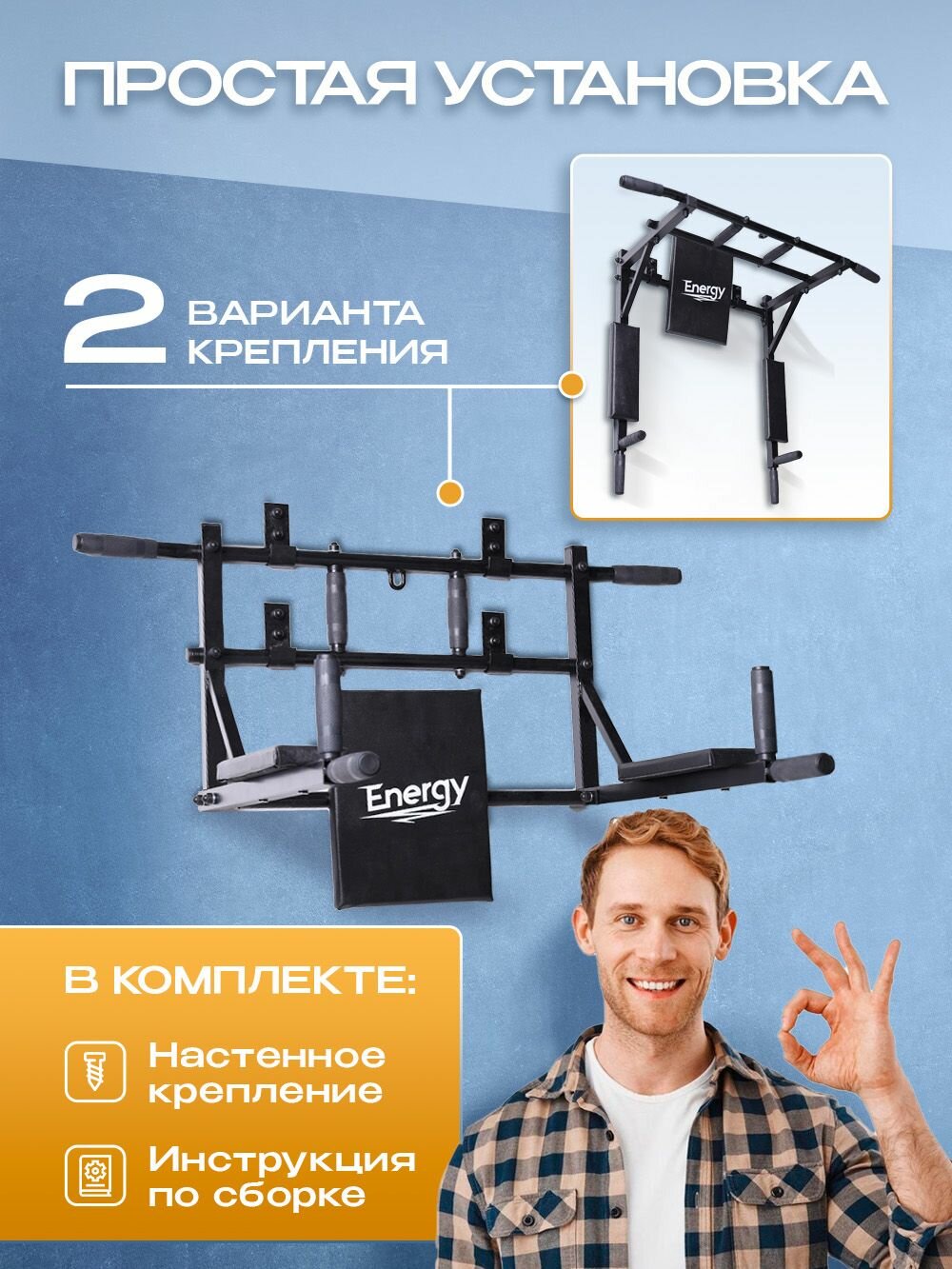Турники и брусья Турник настенный 3 в 1 "ENERGY" стандартный