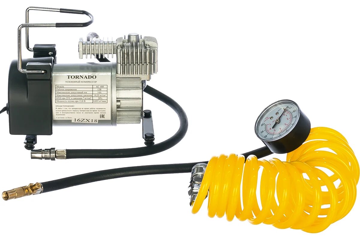 Компрессор автомобильный 35 л/мин 10 атм TORNADO пневматический спиральный шланг AUTOVIRAZH AC-600