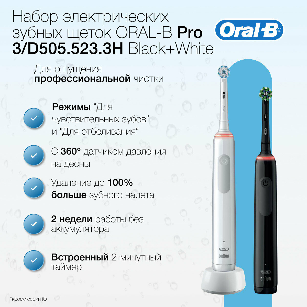 Oral-B Pro 3 3500 Duo - Электрические зубные щетки, Белая и Черная