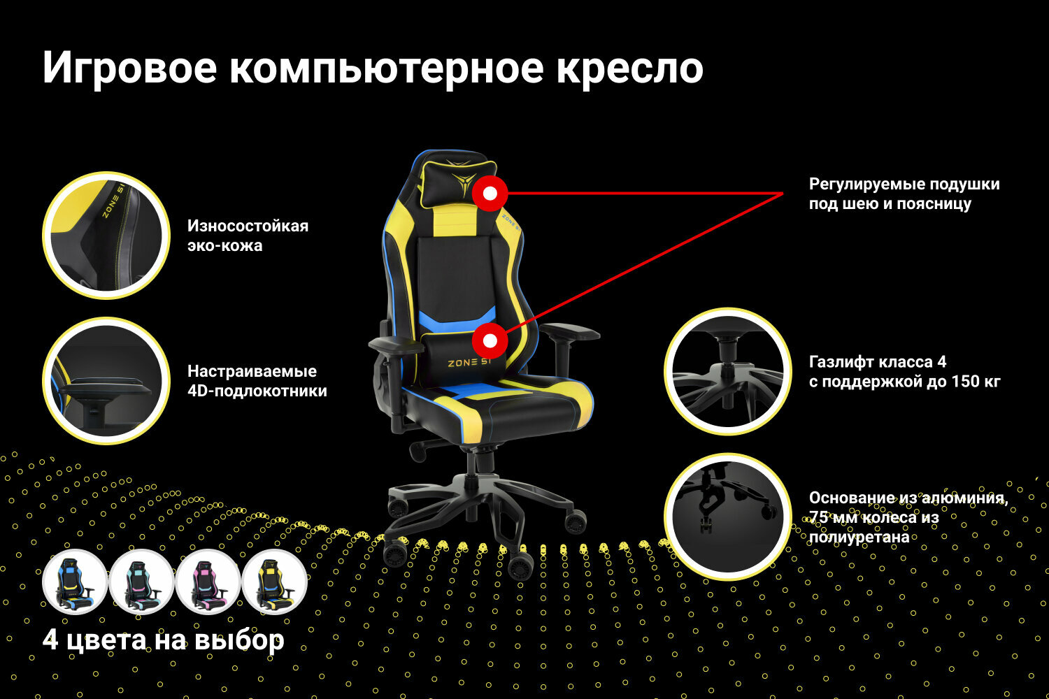 Кресло игровое ZONE 51 Cyberpunk YB Yellow-blue 30 249 ₽ Подробнее