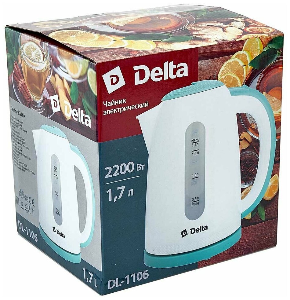 Чайник электрический Delta DL-1106 1,7л, 2200 Вт, белый с мятным .