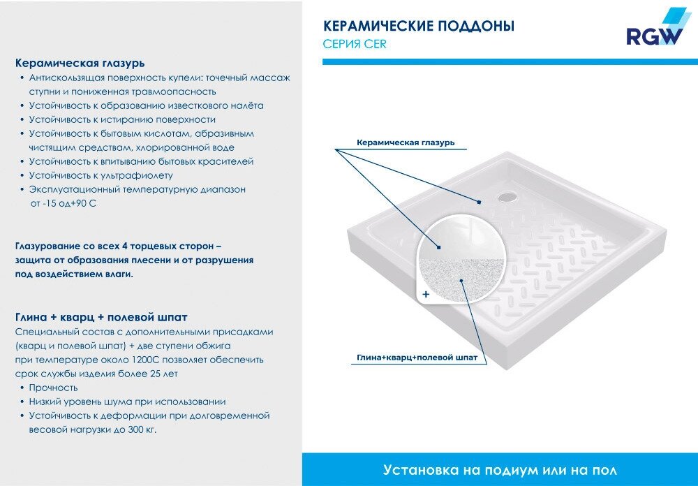 Душевой поддон Поддон для душа RGW CR-099 /Квадрат 60 Керамический/90*90*10