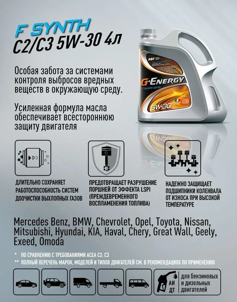 G-Energy Масло Моторное Синтетическое F Synth C2/C3 5w-30, 4л 3 470 ₽ Подробнее