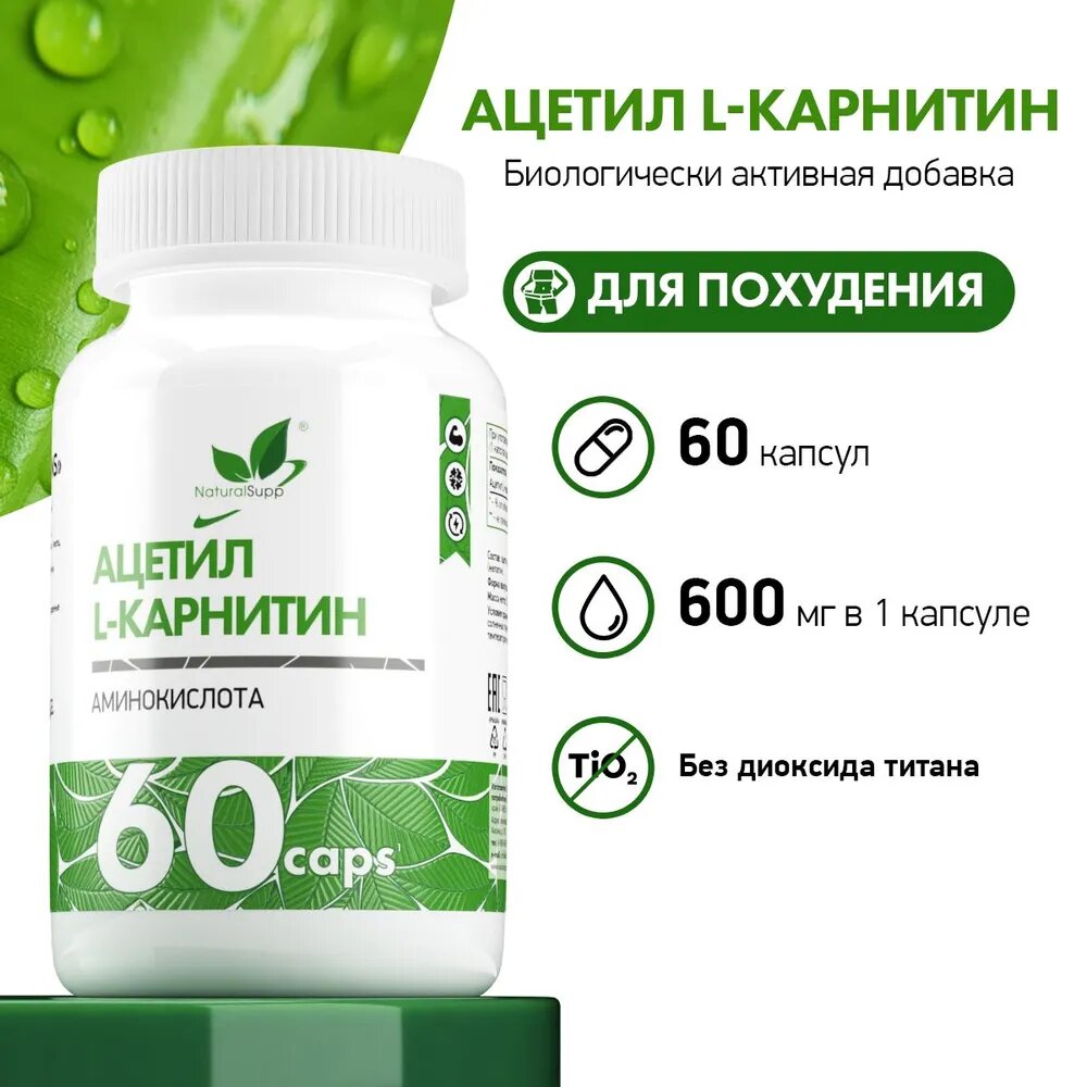 Сжигатель жира NATURALSUPP Acetyl L-Carnitine Ацетиловый карнитин 600мг (60 капсул) (БАД)