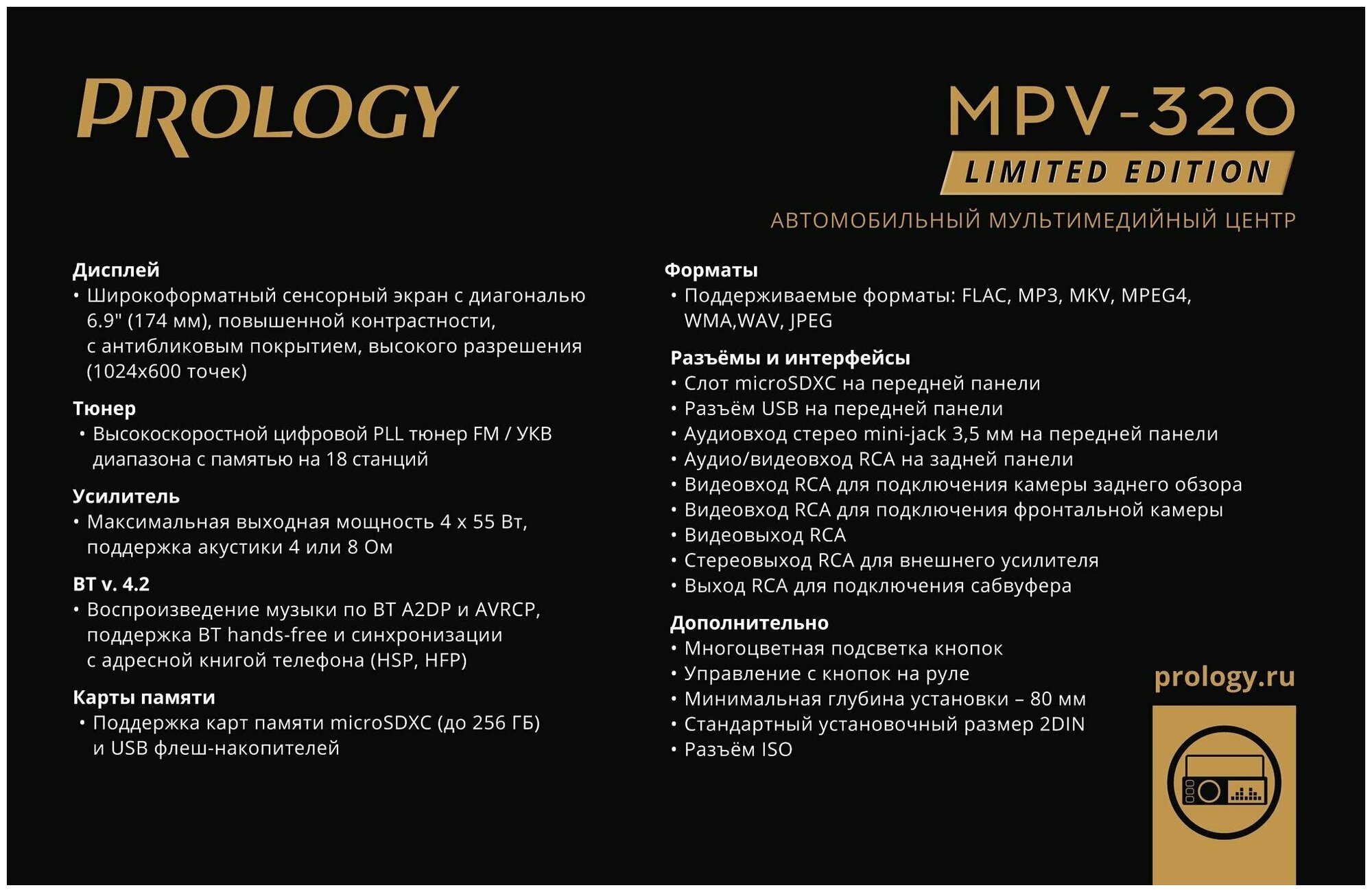 PROLOGY MPV-320 Магнитола автомобильная 2DIN PROLOGY