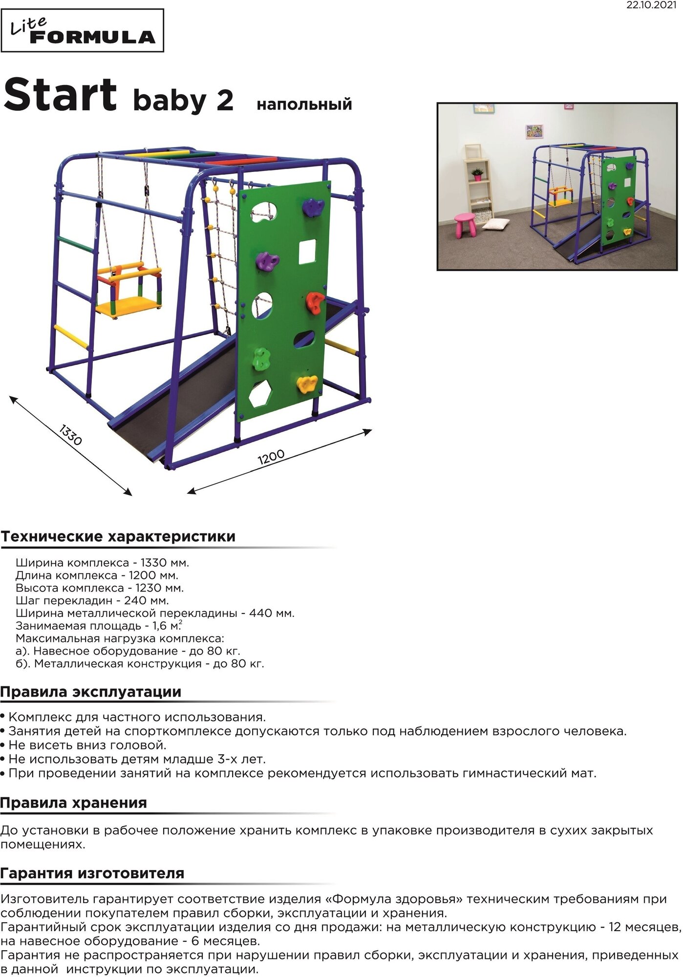 Детский спортивный комплекс Start baby 2, 1200 ? 1330 ? 1230 мм, цвет синий/радуга Формула здоровья .