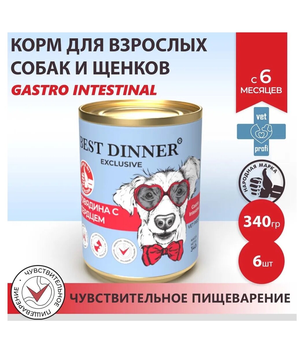 Корм для собак Влажный корм Best Dinner для собак Exclusive Vet Profi Gastro Intestinal, говядина, сердце, 6 шт. х 340 г