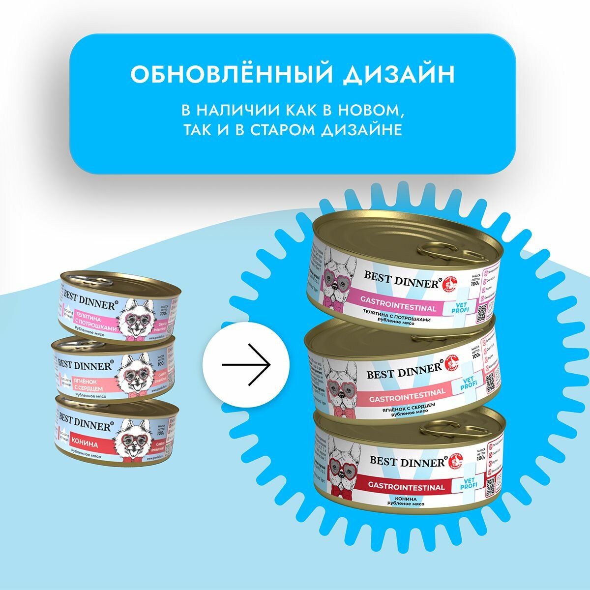 Корм консервированный Best Dinner Vet Profi Gastro Intestinal Телятина с потрошками, 12 шт х 100 г