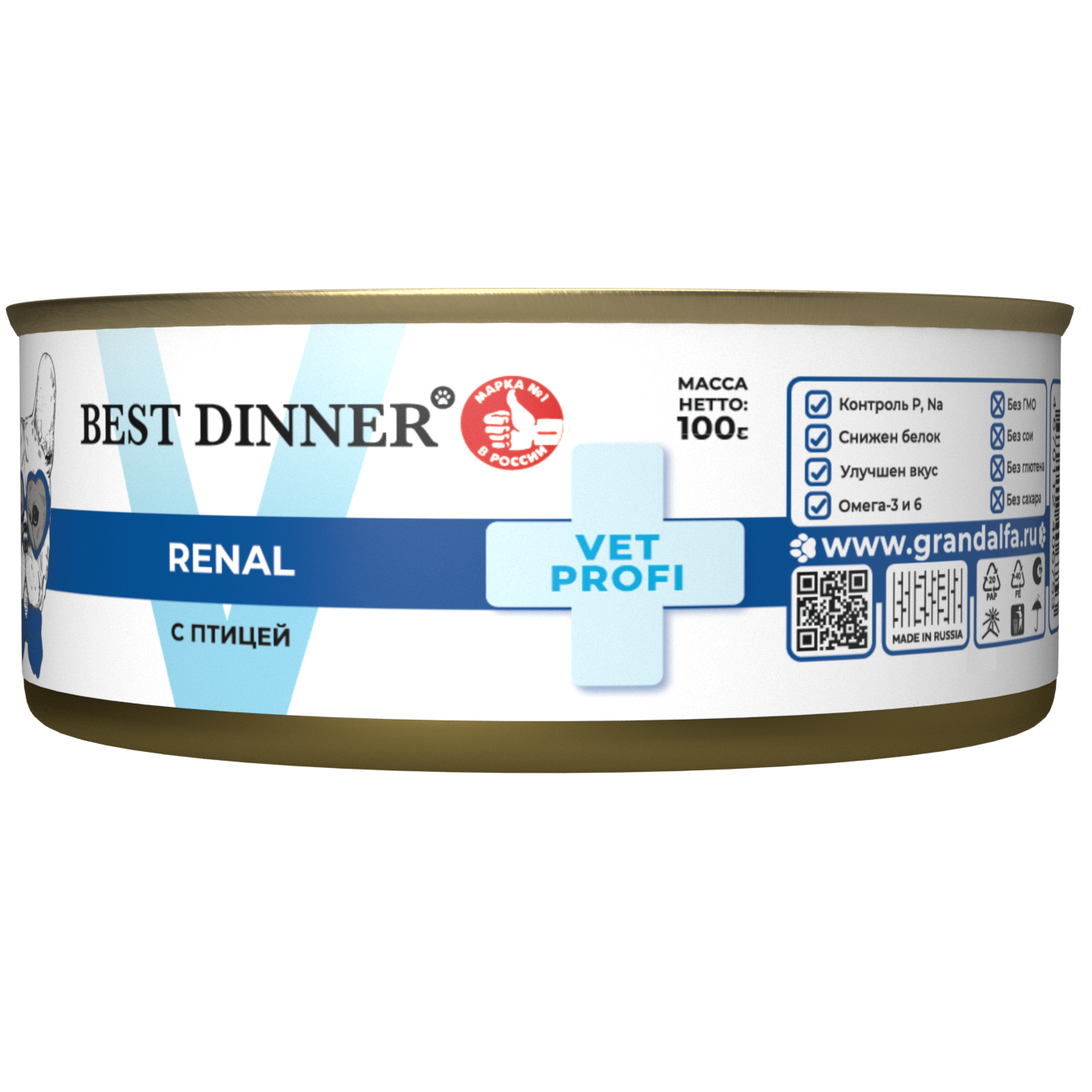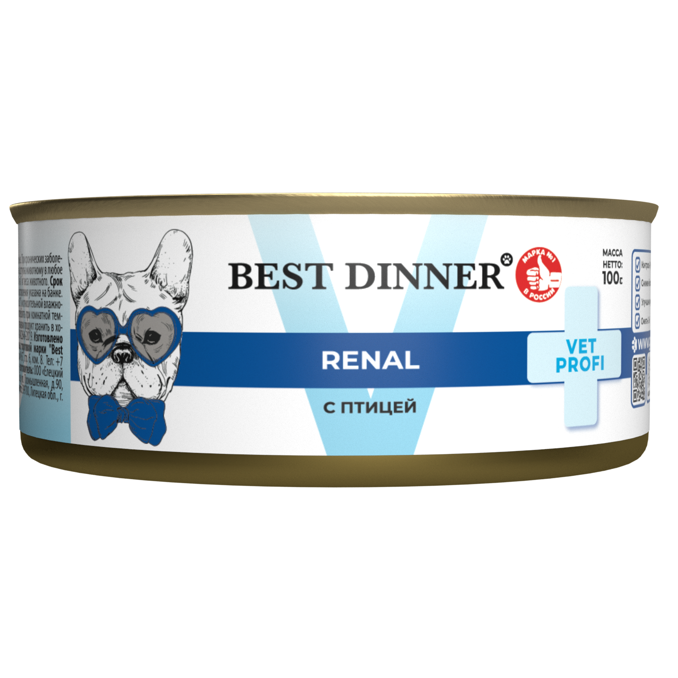 Корм для собак Консервы Best Dinner Vet Profi Renal лечебный, для собак всех пород, при заболеваниях почек, птица 100гр