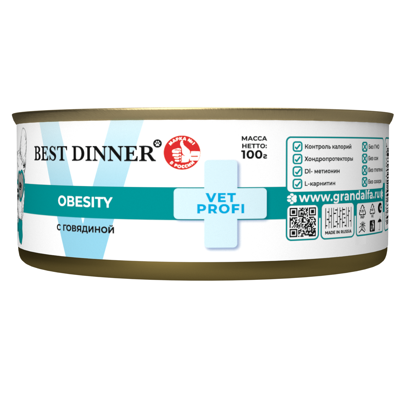 Корм для собак Влажный корм Best Dinner Vet Profi Obesity для собак при для снижения и контроля избыточной массы тела Говядина 12шт х 100г