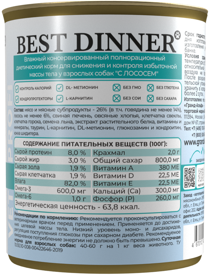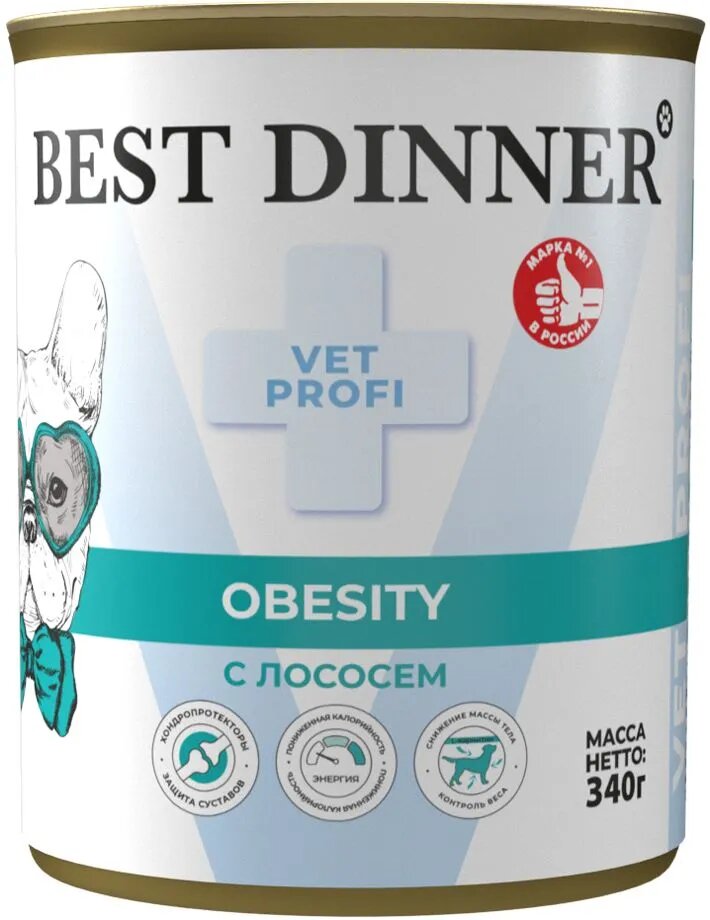 Корм для собак Консервы Best Dinner Vet Profi Obesity, для собак, для снижения избыточной массы, лосось 340гр