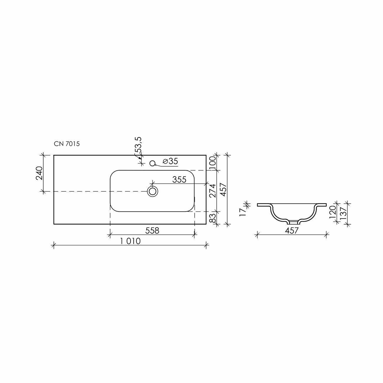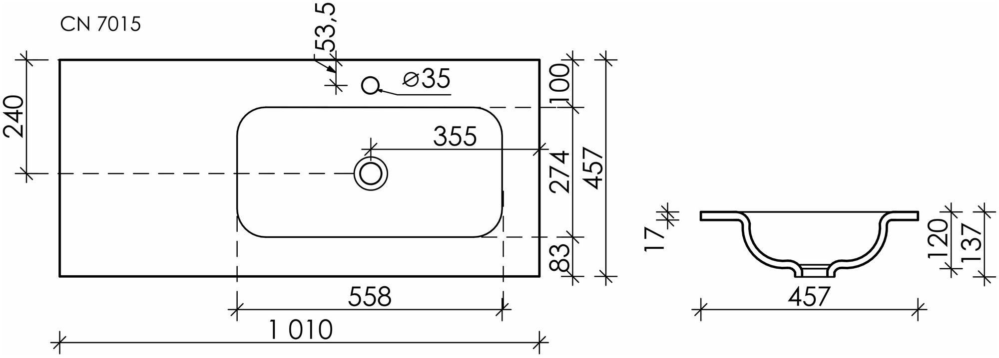 Умывальник Накладная раковина Ceramicanova Element CN7015 прямоугольная 101 см, чаша справа