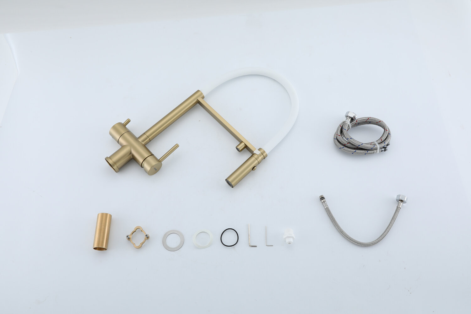 Смесители Смеситель для кухни Gappo G4397-83, золотой сатин, покрытие PVD, горизонтальный монтаж, гибкий излив