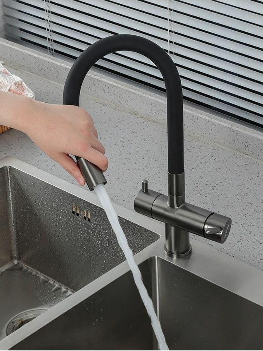 Смеситель для кухонной мойки Gappo G97-89 G4397-89 с подключением фильтра питьевой воды и гибким изливом, оружейная сталь 19 431 ₽ Подробнее