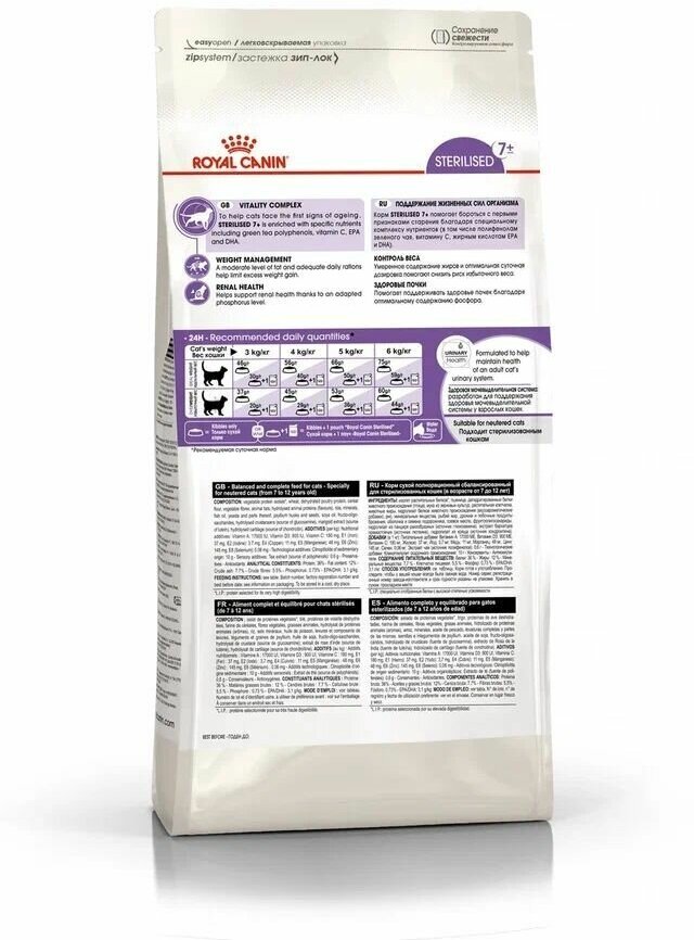 Корм сухой Royal Canin STERILISED 7+ Питание, способствующее поддержанию оптимального веса, для стерилизованных кошек и кастрированных котов в возрасте старше 7 лет, 1,5кг