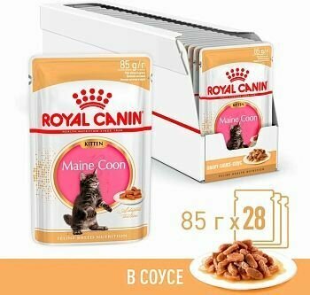 Корм для кошек Royal Canin Maine Coon Kitten пауч для кошек породы мейн кун кусочки в соусе Упаковка 28шт х 85г
