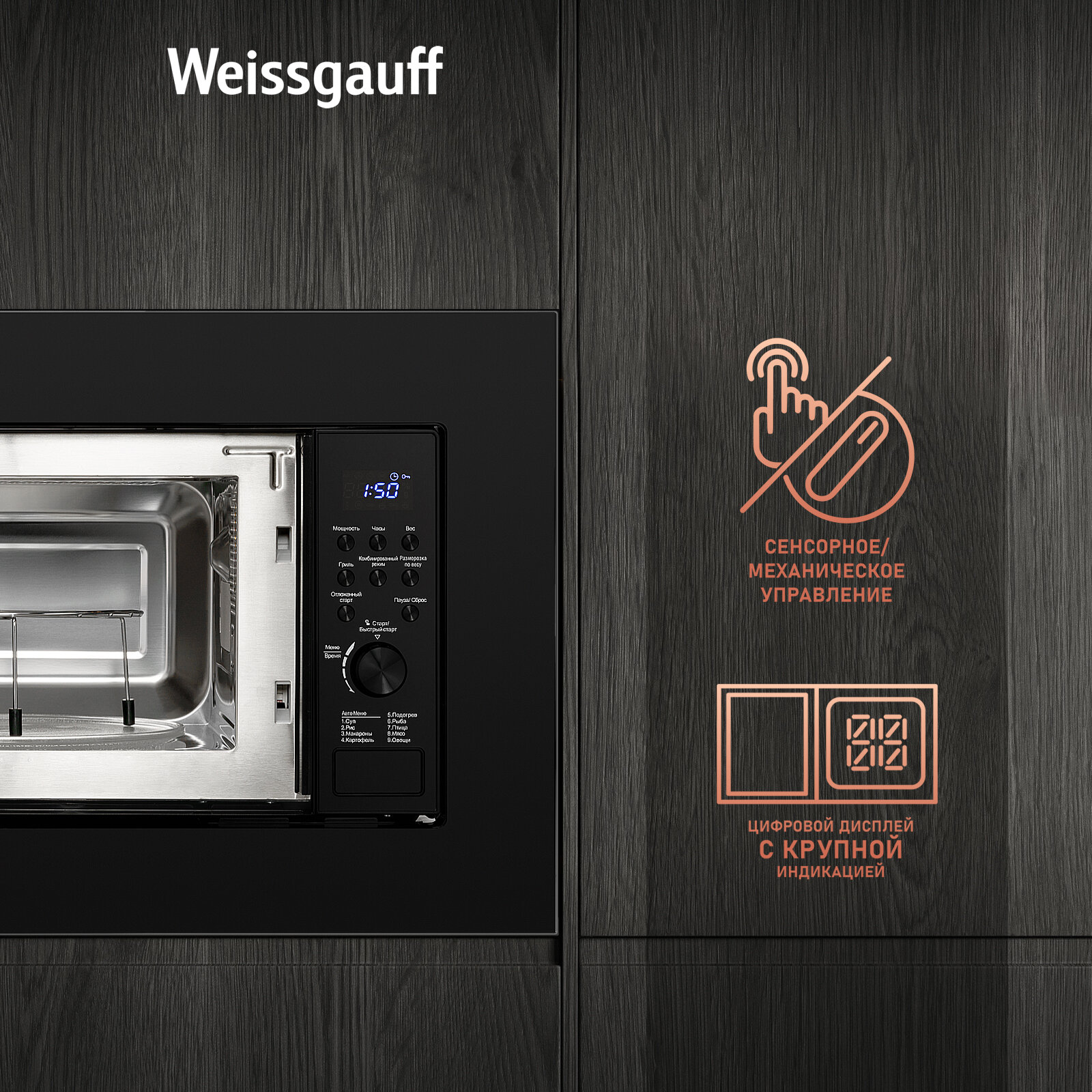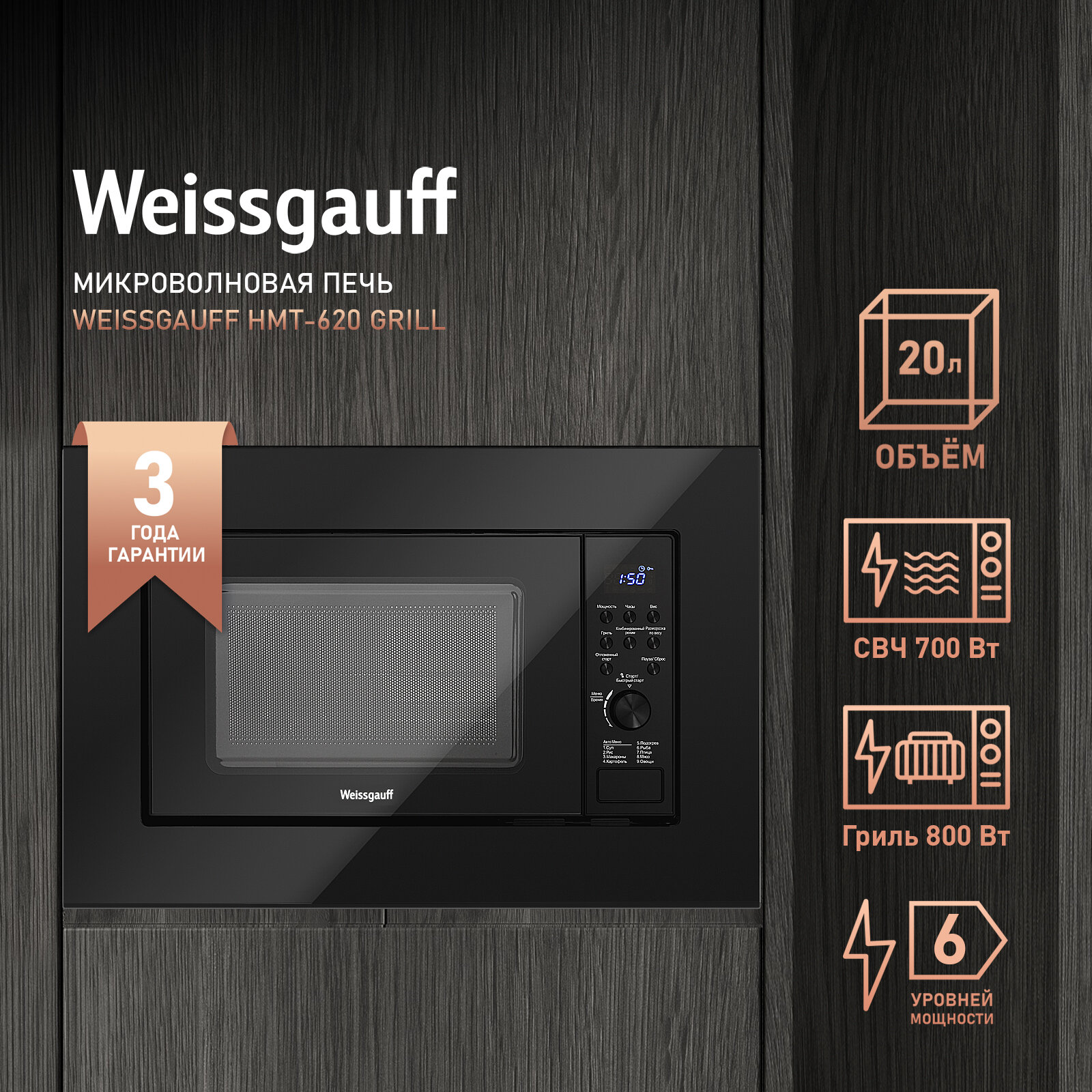 Микроволновая печь WEISSGAUFF HMT-620 Grill, встраиваемая, 20л, 700Вт, черный [429658]