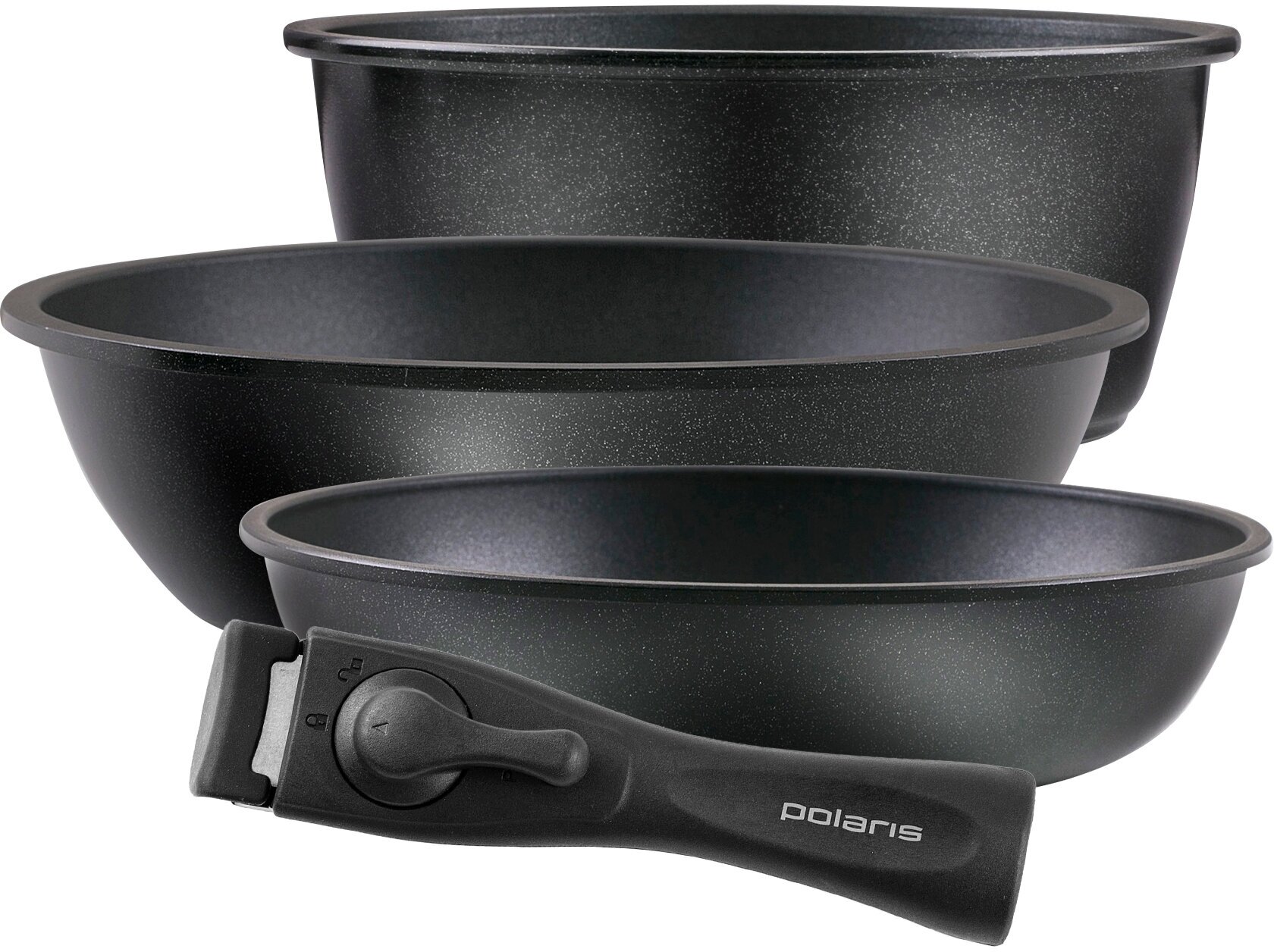 Кастрюля Набор посуды Polaris EasyKeep-4D, алюминий, черный, антипригарное покрытие, съемная ручка