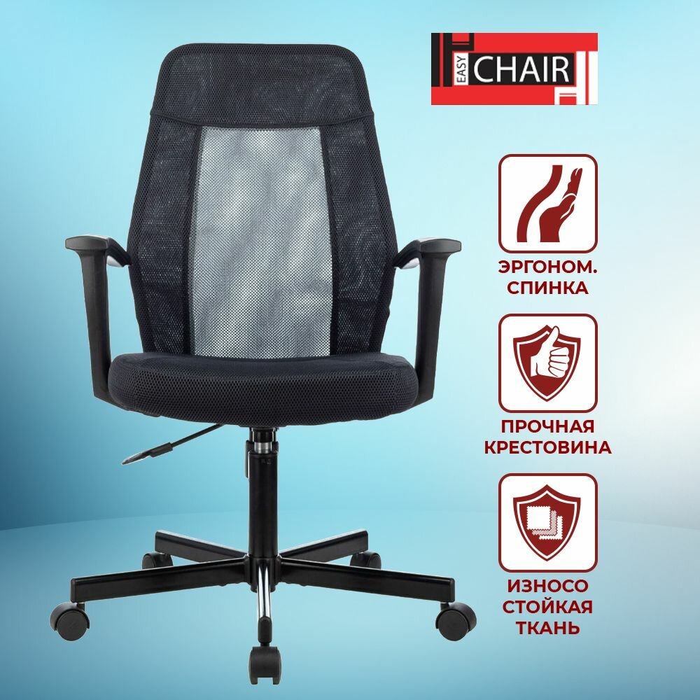 Кресло компьютерное Easy Chair 225 DSL, офисный стул на колесиках, сетка/ткань, черный 9 774 ₽ Подробнее
