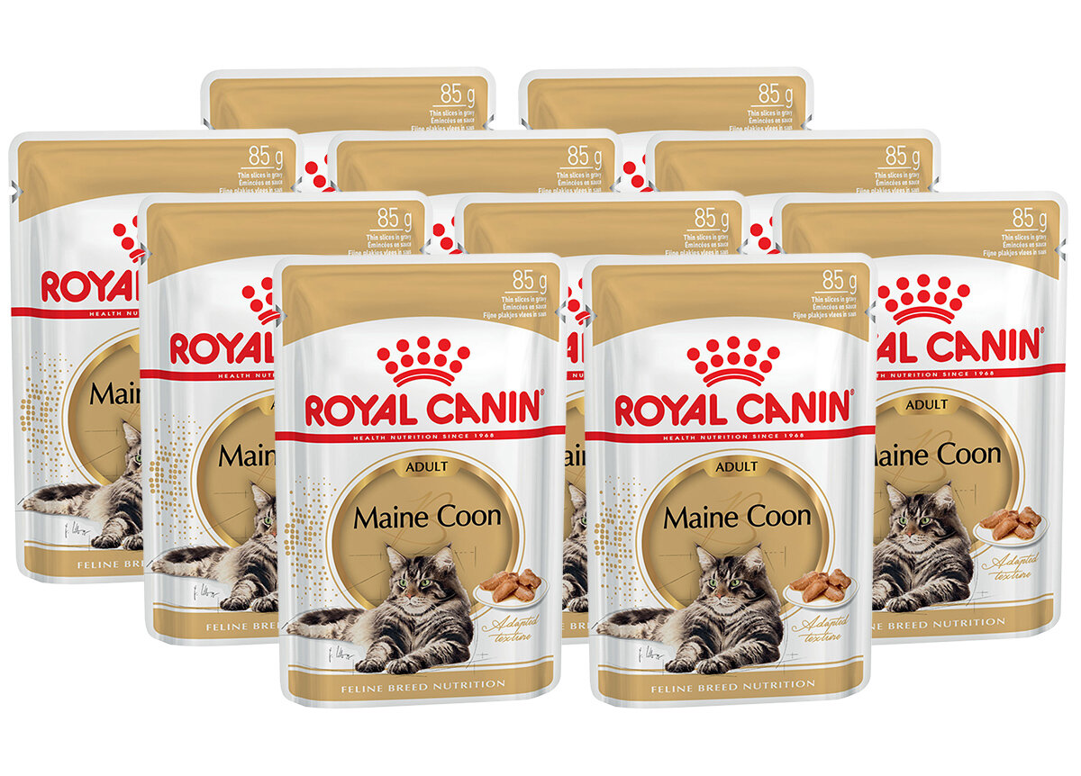 Влажный корм для кошек Royal Canin Maine Coon Adult, для взрослых кошек породы мейн-кун, 10 шт. х 85 г (кусочки в соусе)