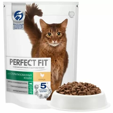 Сухой полнорационный корм PERFECT FIT для стерилизованных кошек, с курицей, 3 шт по 650 г