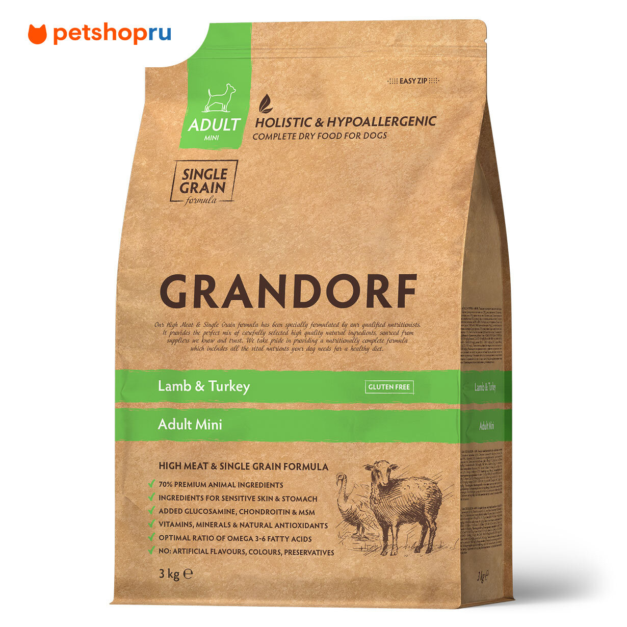 GRANDORF SINGLE GRAIN DOG ADULT MINI LAMB & TURKEY низкозерновой для взрослых собак маленьких пород с ягненком и индейкой (3 кг)