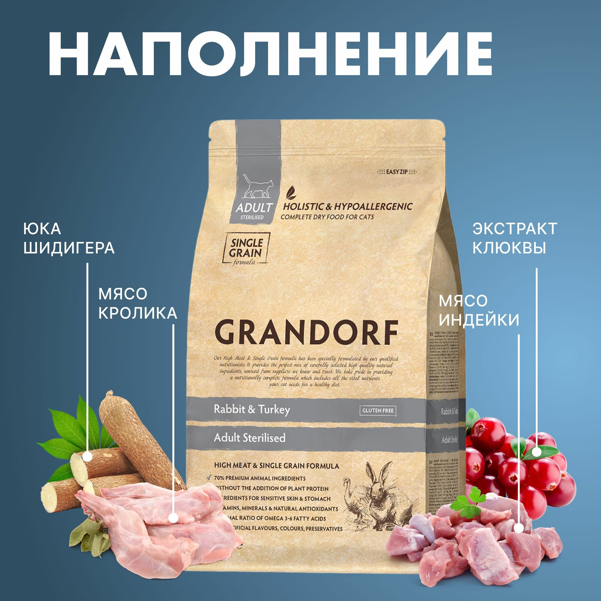 Сухой корм для стерилизованных кошек Грандорф. Кролик, Индейка - 8 кг