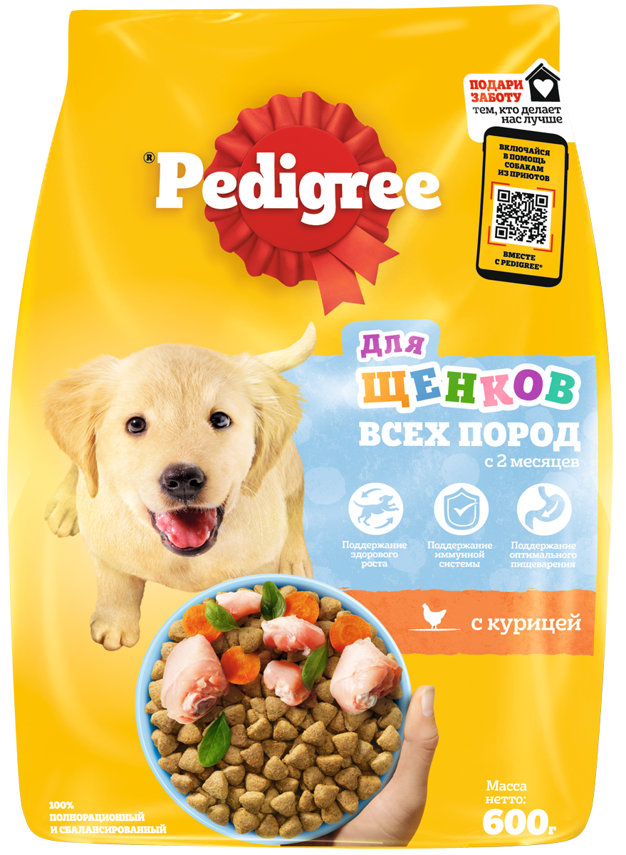 Корм сухой Pedigree полнорационный для щенков всех пород с 2 месяцев, с курицей, 600г
