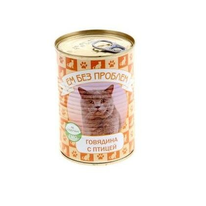 Ем без проблем Консервированный корм для кошек Говядина с птицей 410г (10 шт)