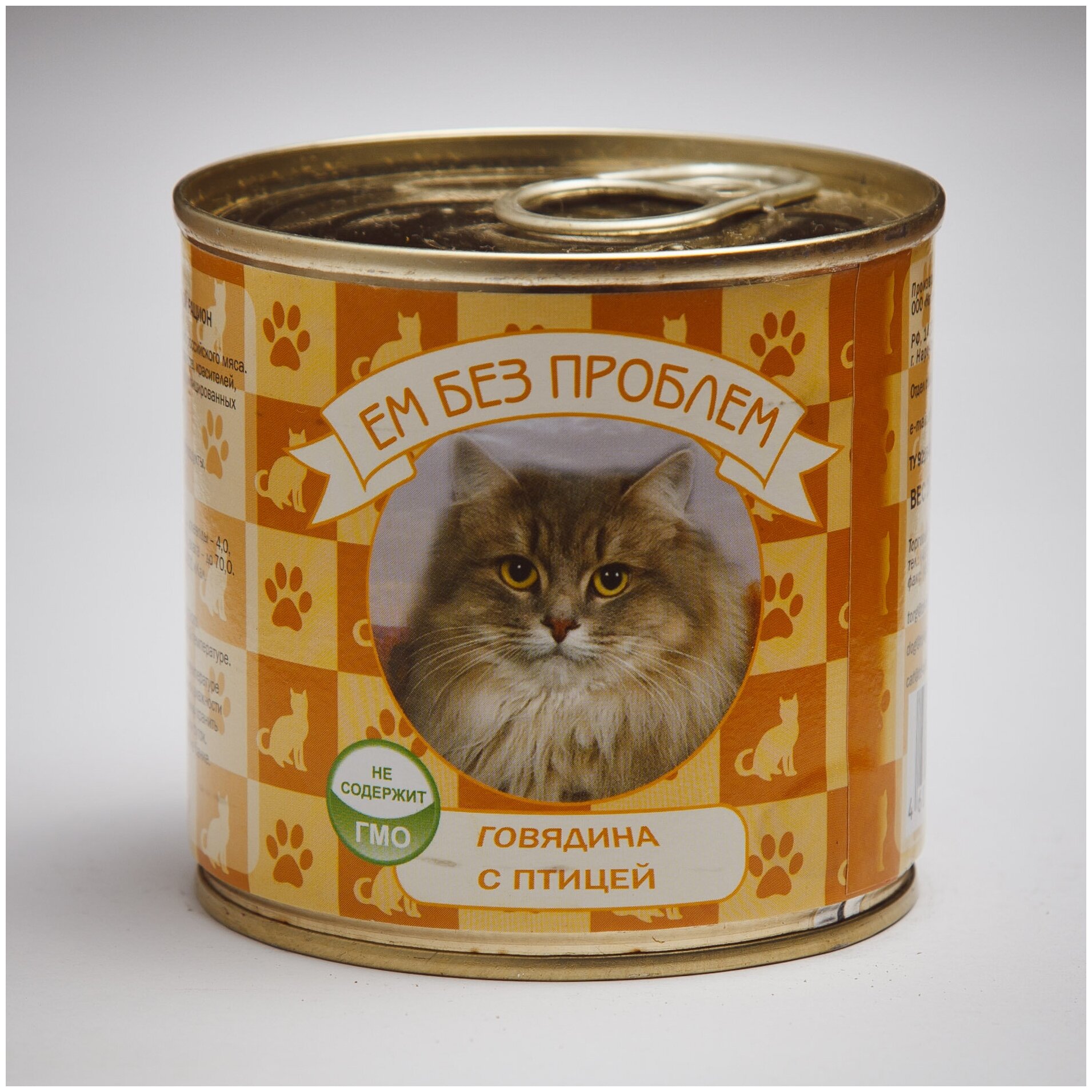 Корм для кошек Корм влажный ЕМ без проблем паштет говядина и птица для кошек (250 г)