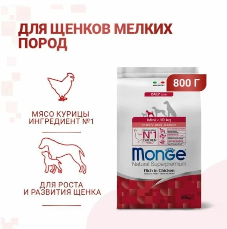 Корм для собак Корм сухой для щенков мелких пород Monge из курицы 800 г