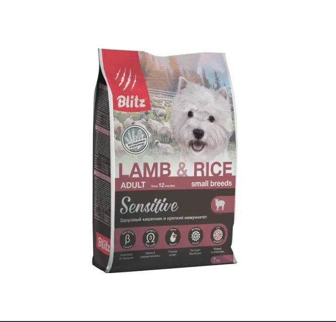 BLITZ ADULT SMALL BREEDS SENSITIVE LAMB & RICE для взрослых собак маленьких пород с ягненком и рисом (7 кг)