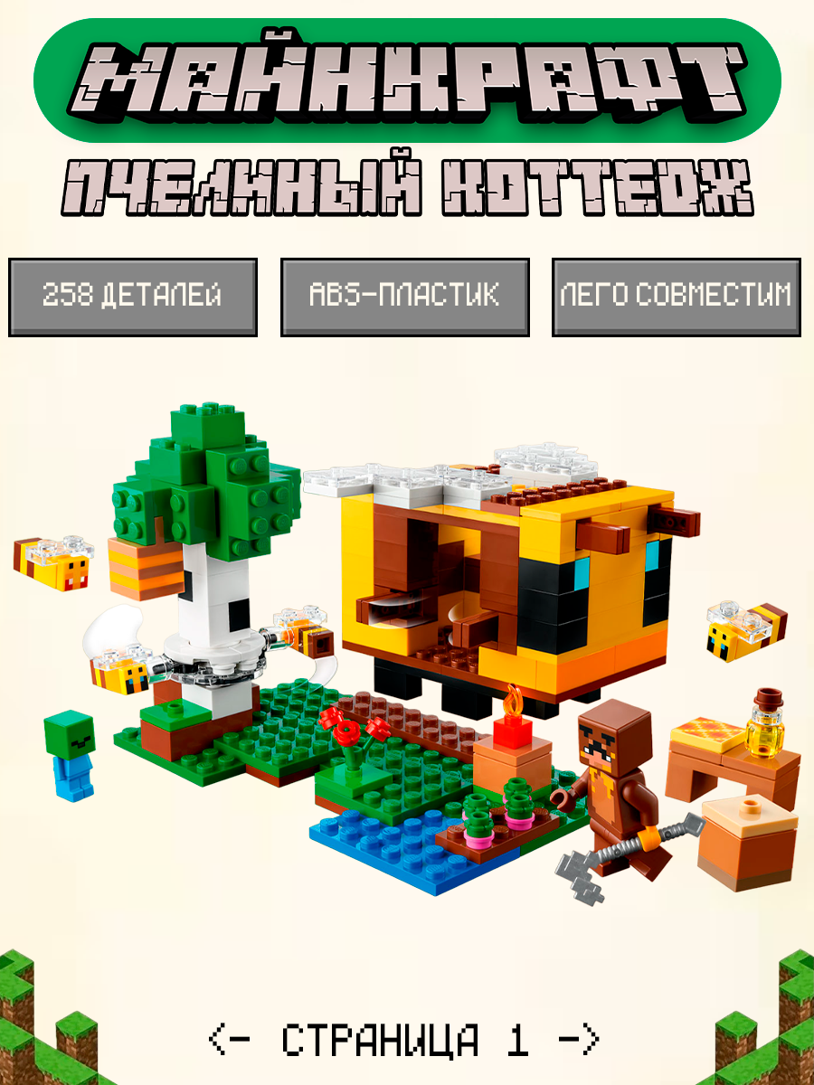 Конструктор Конструктор Майнкрафт "Пчелиный коттедж" 258 деталей / совместим с лего / детский