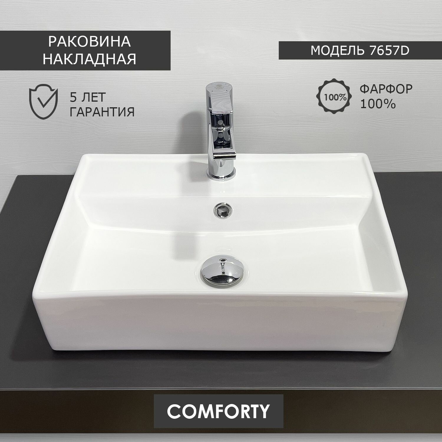 Накладная раковина COMFORTY 78574-60 на столешницу из фарфора с прямоугольной чашей 11 000 ₽ Подробнее