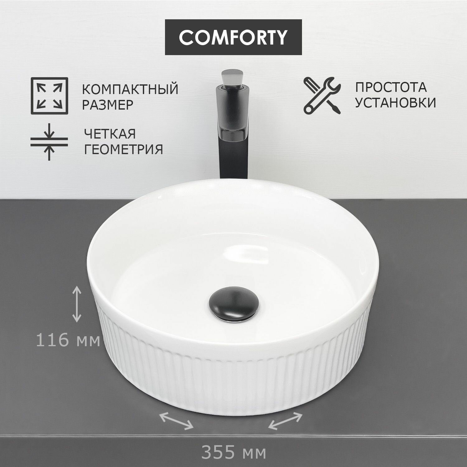 Накладная круглая рифленая раковина Comforty 78728 для ванной для установки на столешницу 8 900 ₽ Подробнее