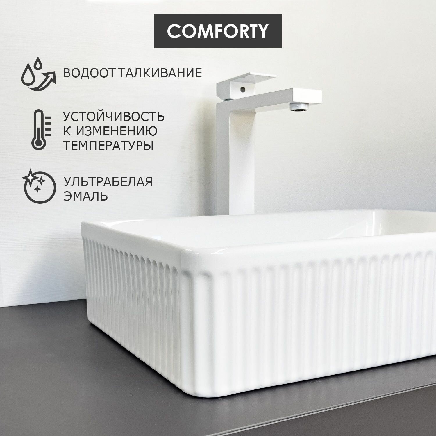 Умывальник Накладная прямоугольная рифленая раковина 50 см Comforty CF178609X для ванной для установки на столешницу