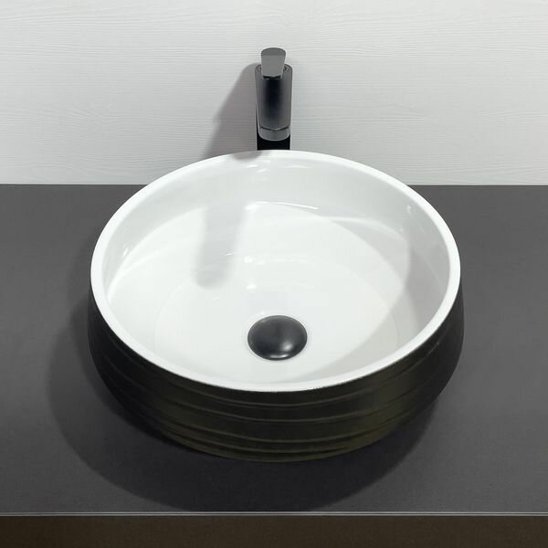Умывальник Накладная черно-белая раковина-чаша 42 см Comforty J2110 для ванной, круглая из фарфора, для установки на столешницу