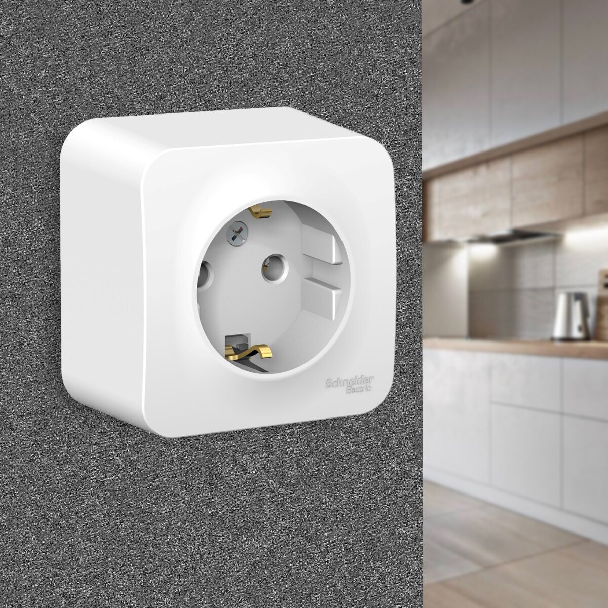 Розетка Schneider Electric Blanca с заземлением, открытый монтаж, изолирующая пластина. Ясень