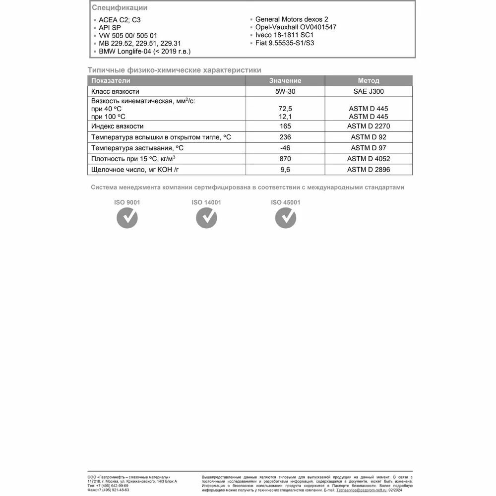 GAZPROMNEFT 253140248 5W-30 50L G-ENERGY SYNTHETIC SUPER START масо мотор. Синтетич.