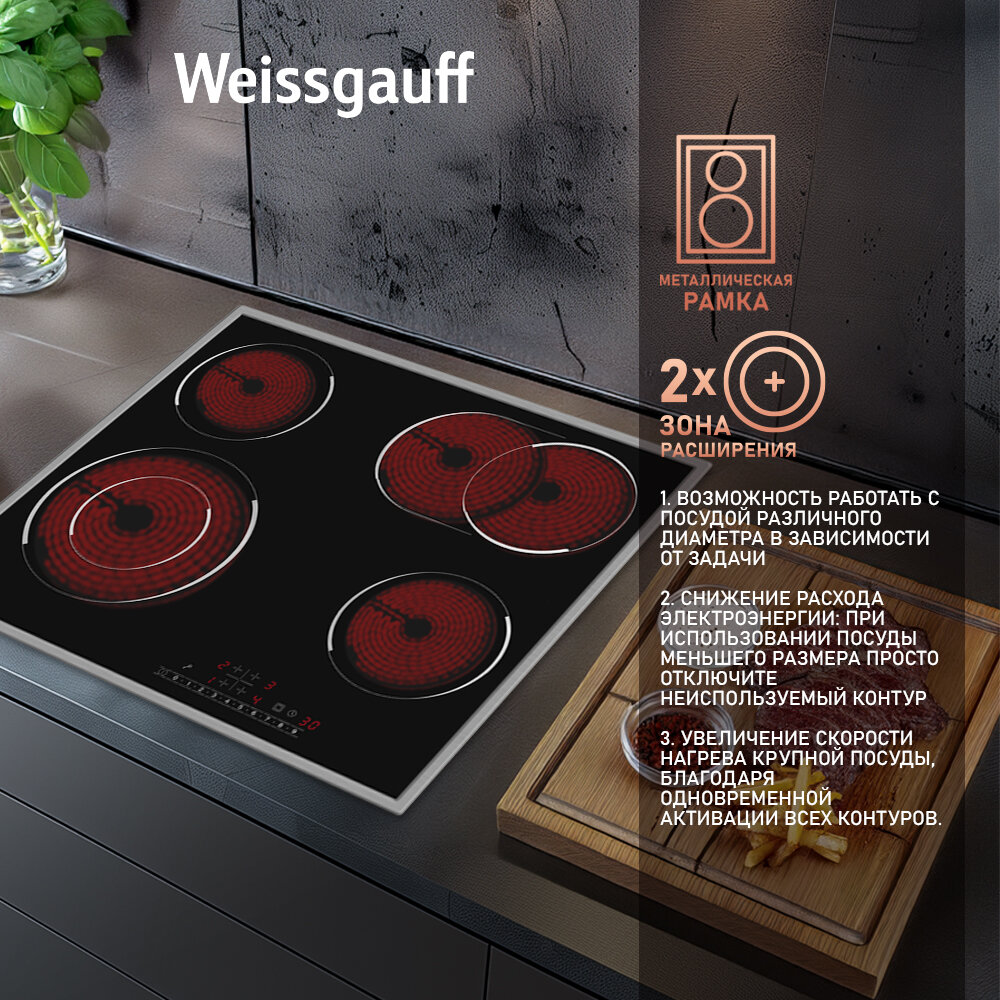 Варочные поверхности Стеклокерамическая панель со слайдером Weissgauff HV 642 BS двухконтурная зона расширения