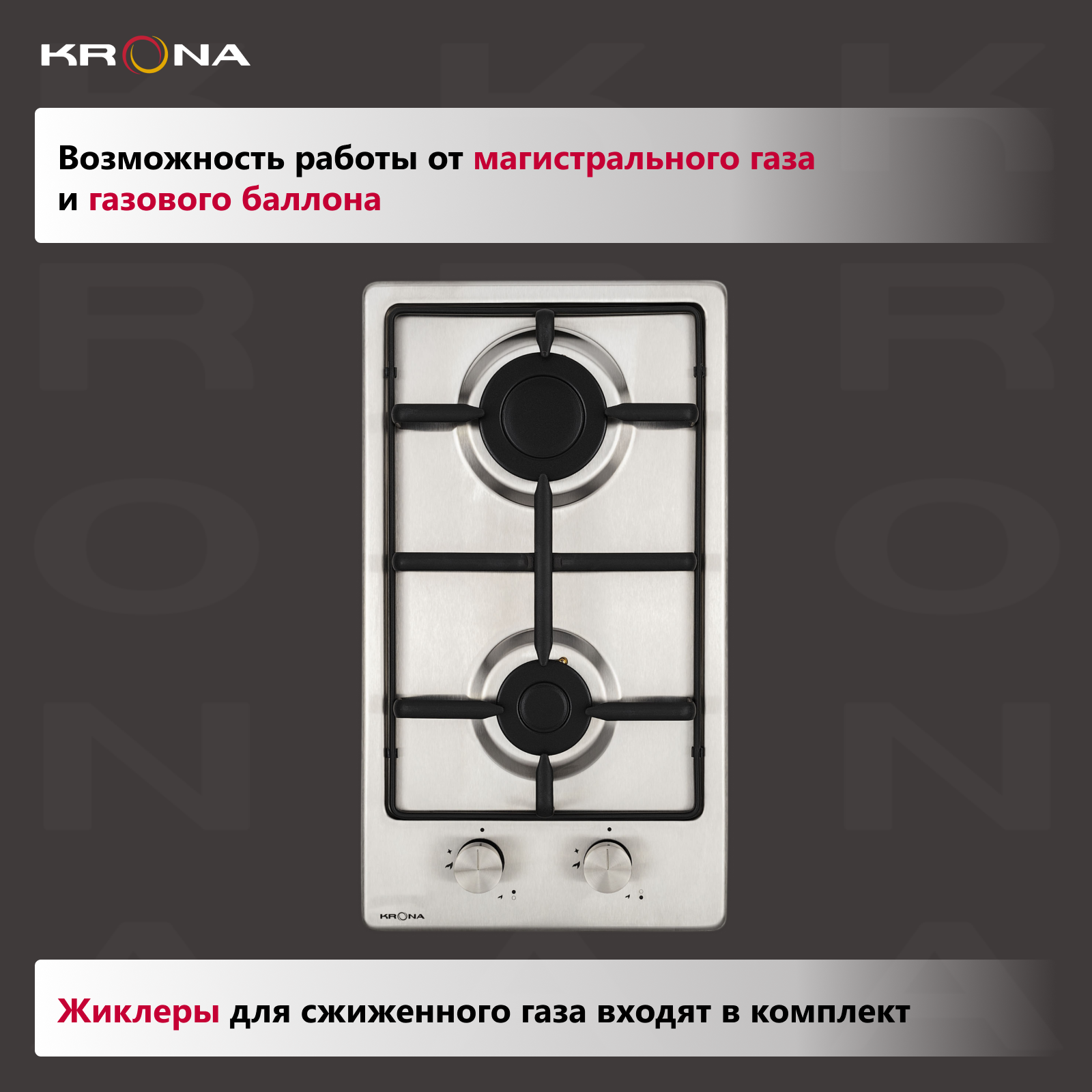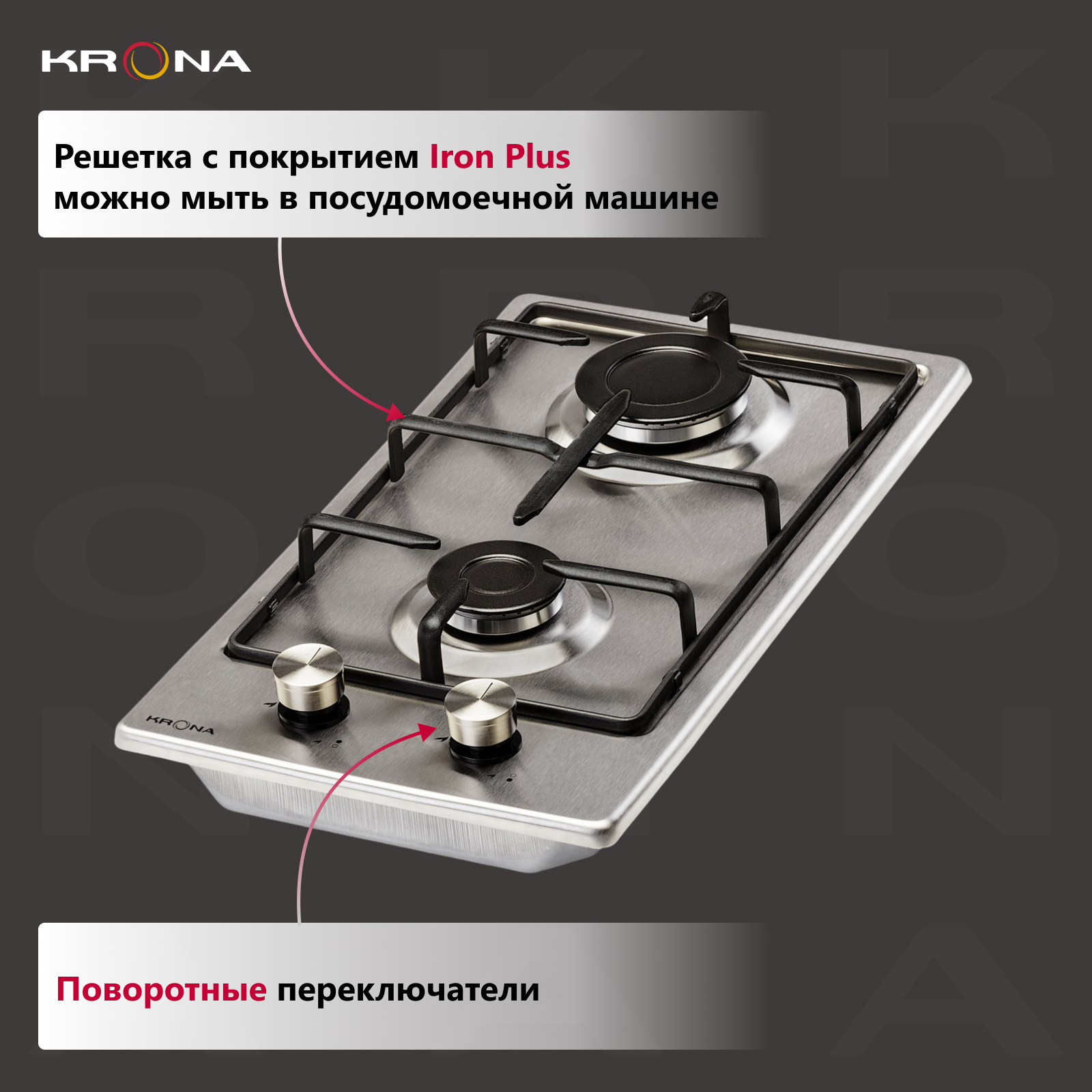Варочная поверхность KRONA PARTITA 30 IX встраиваемая газовая (независимая) нержавеющая сталь