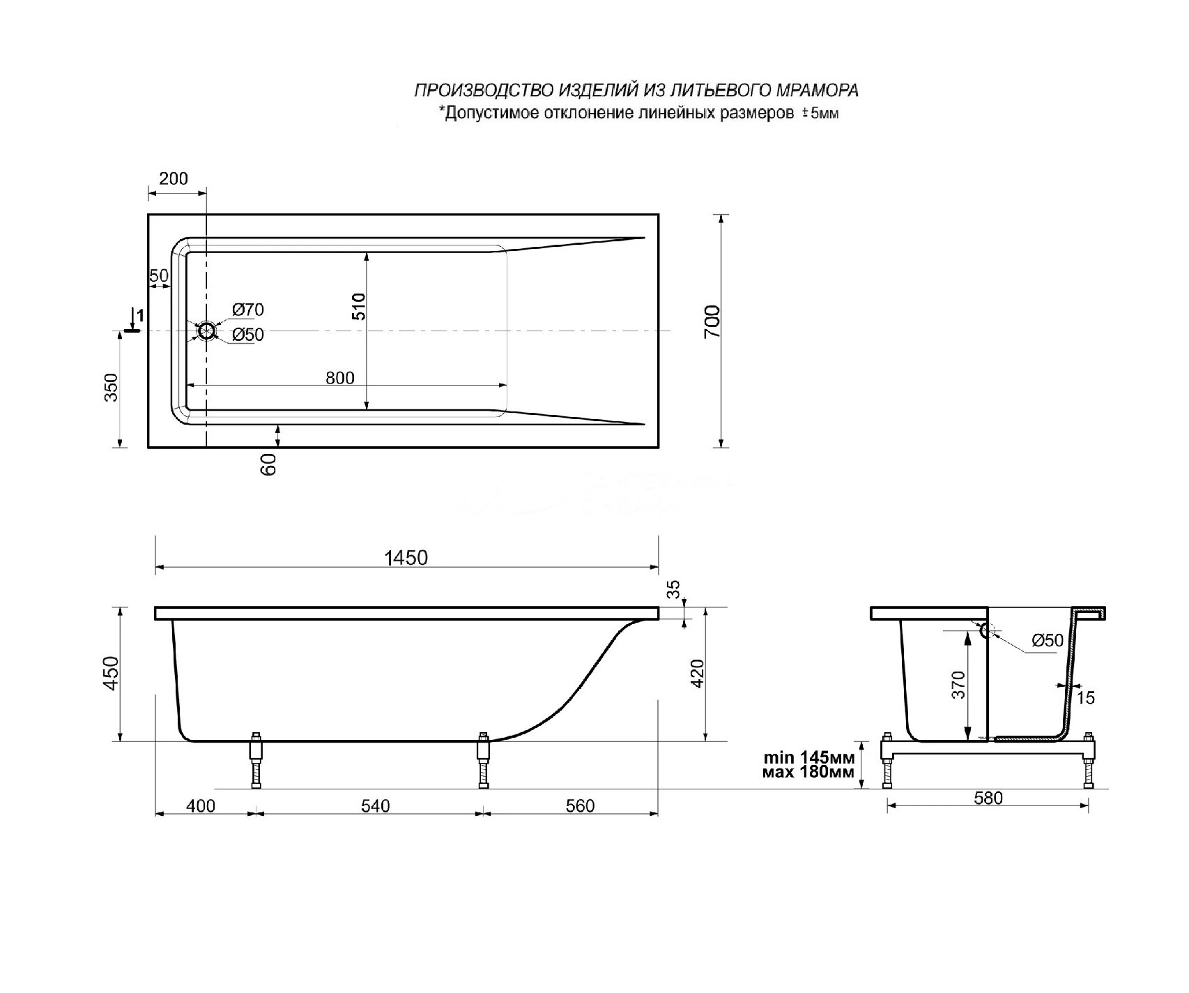 Ванны Ванна из литьевого мрамора Sergig Viven 145x70 (белая, глянцевая)