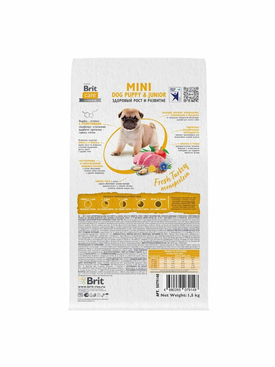 BRIT CARE Mini, Сухой корм с индейкой для щенков и молодых собак мини пород "Puppy&Junior. Healthy Growth",1.5кг 1 984 ₽ Подробнее