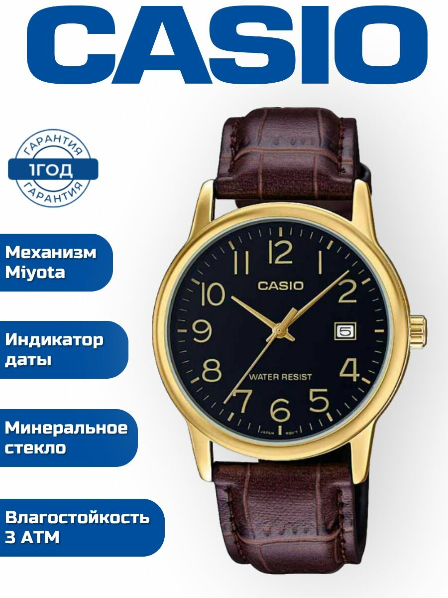 Наручные часы CASIO MTP-V002GL-1B, коричневый, золотой