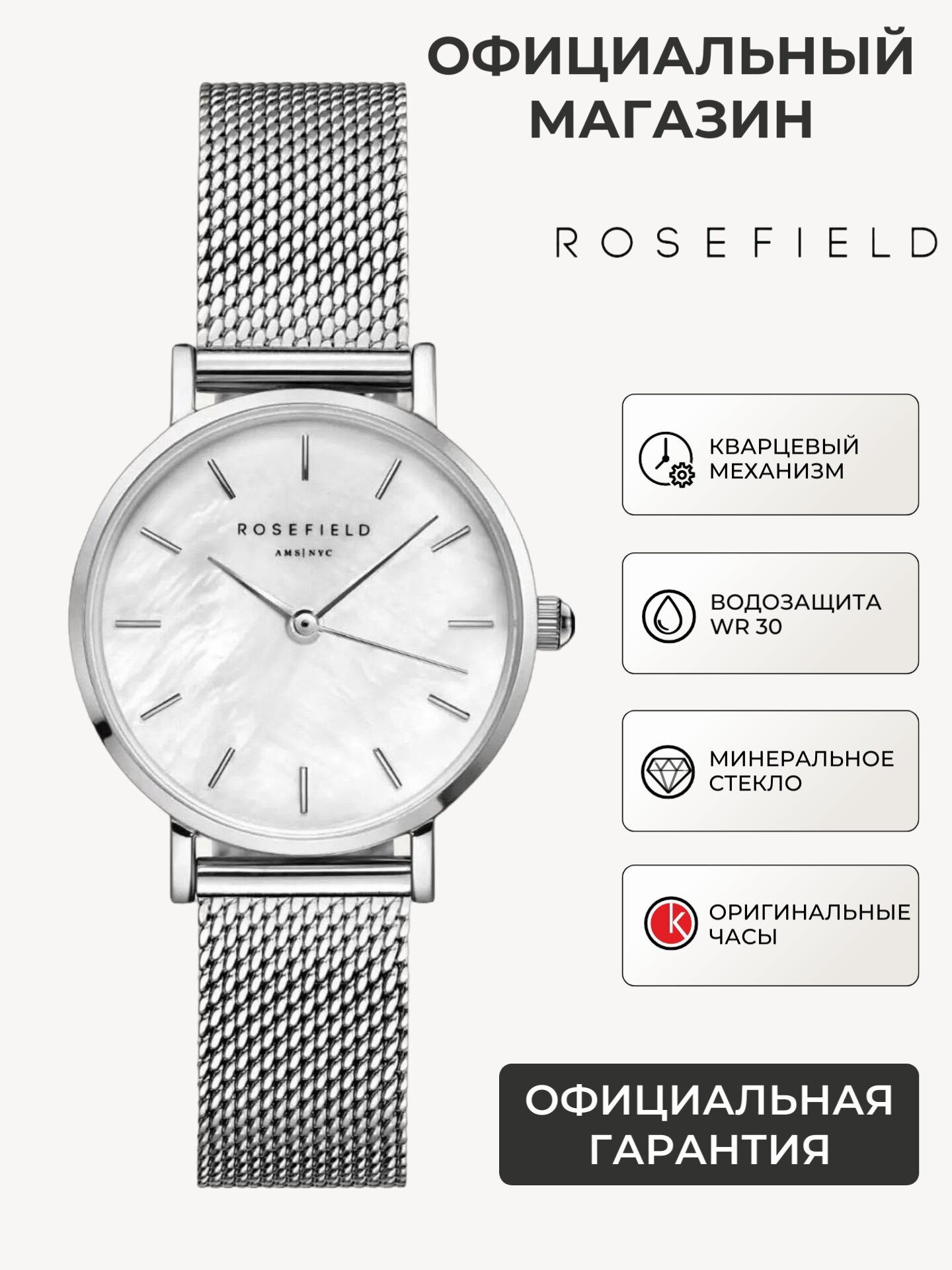 Женские наручные часы с минеральным стеклом Rosefield The Upper East Side UEWG-U21 с гарантией