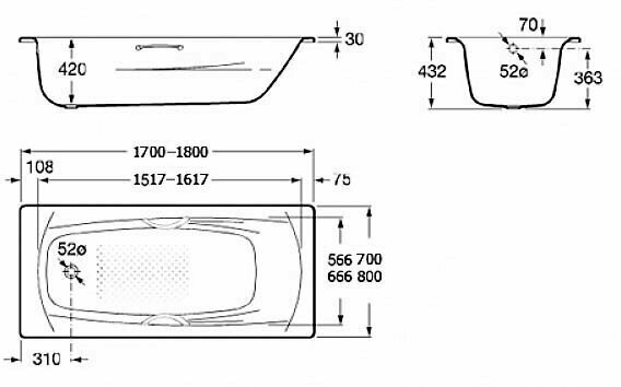 | Комплектация | ванна / ножки / сифон |