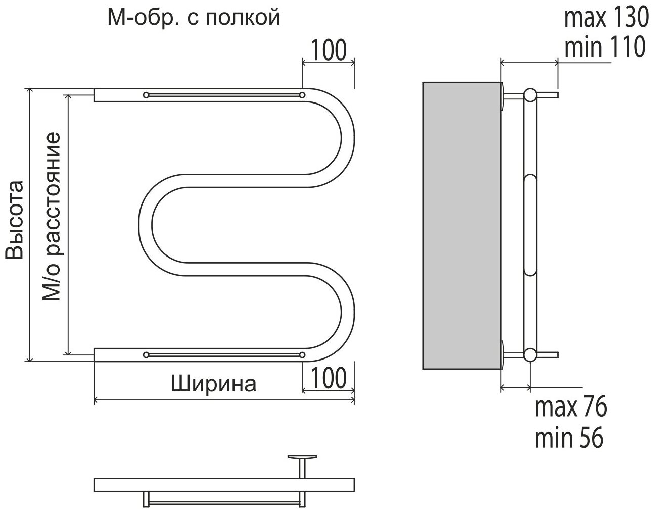 Полотенцесушители Полотенцесушитель М-обр 32пс 500*600мм с полкой TERMINUS