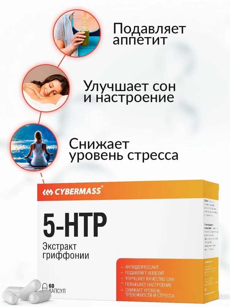 Аминокислоты 5 ХТП 5-Гидрокситриптофан CYBERMASS 5-HTP (блистеры, 60 капсул)
