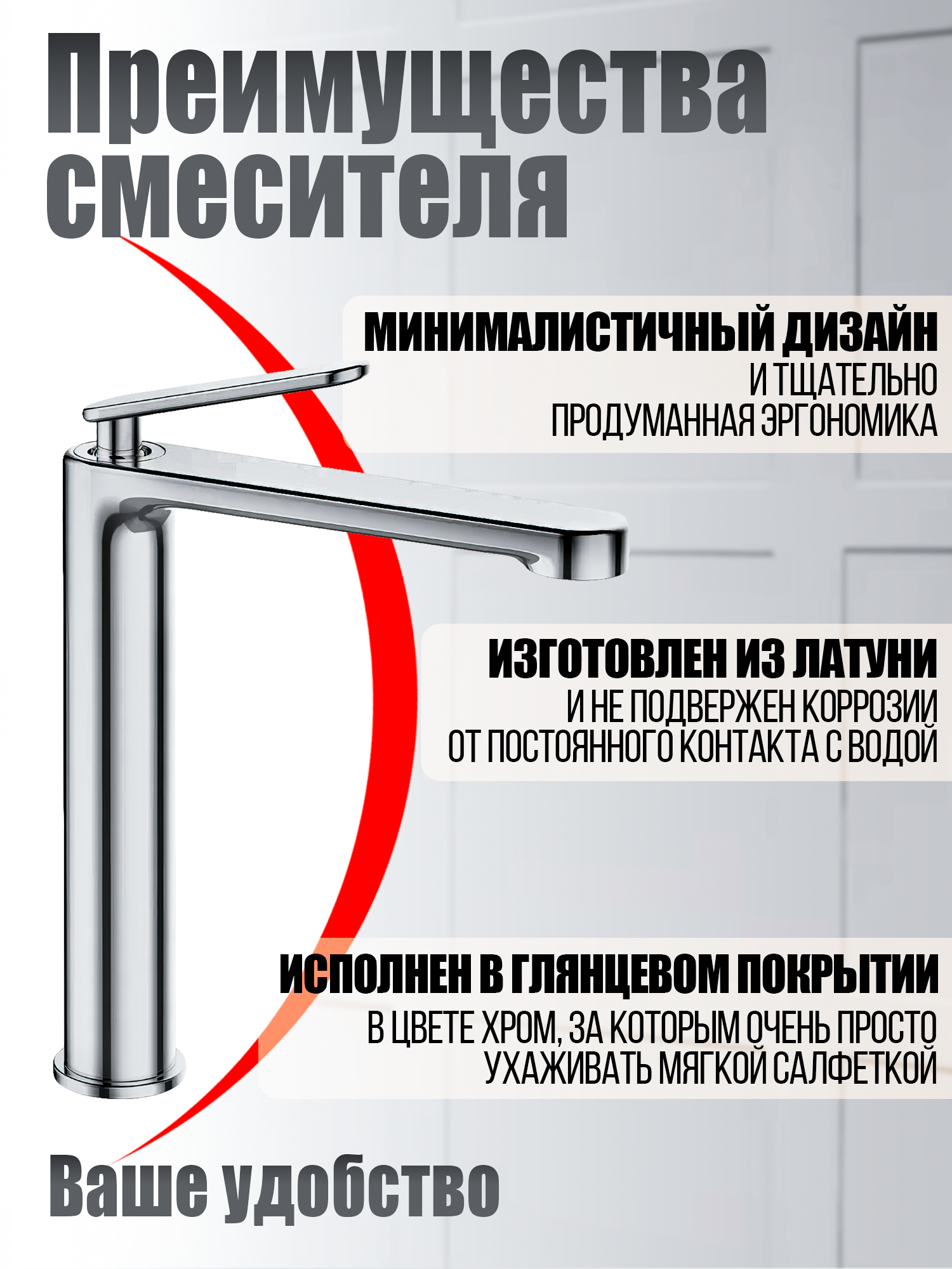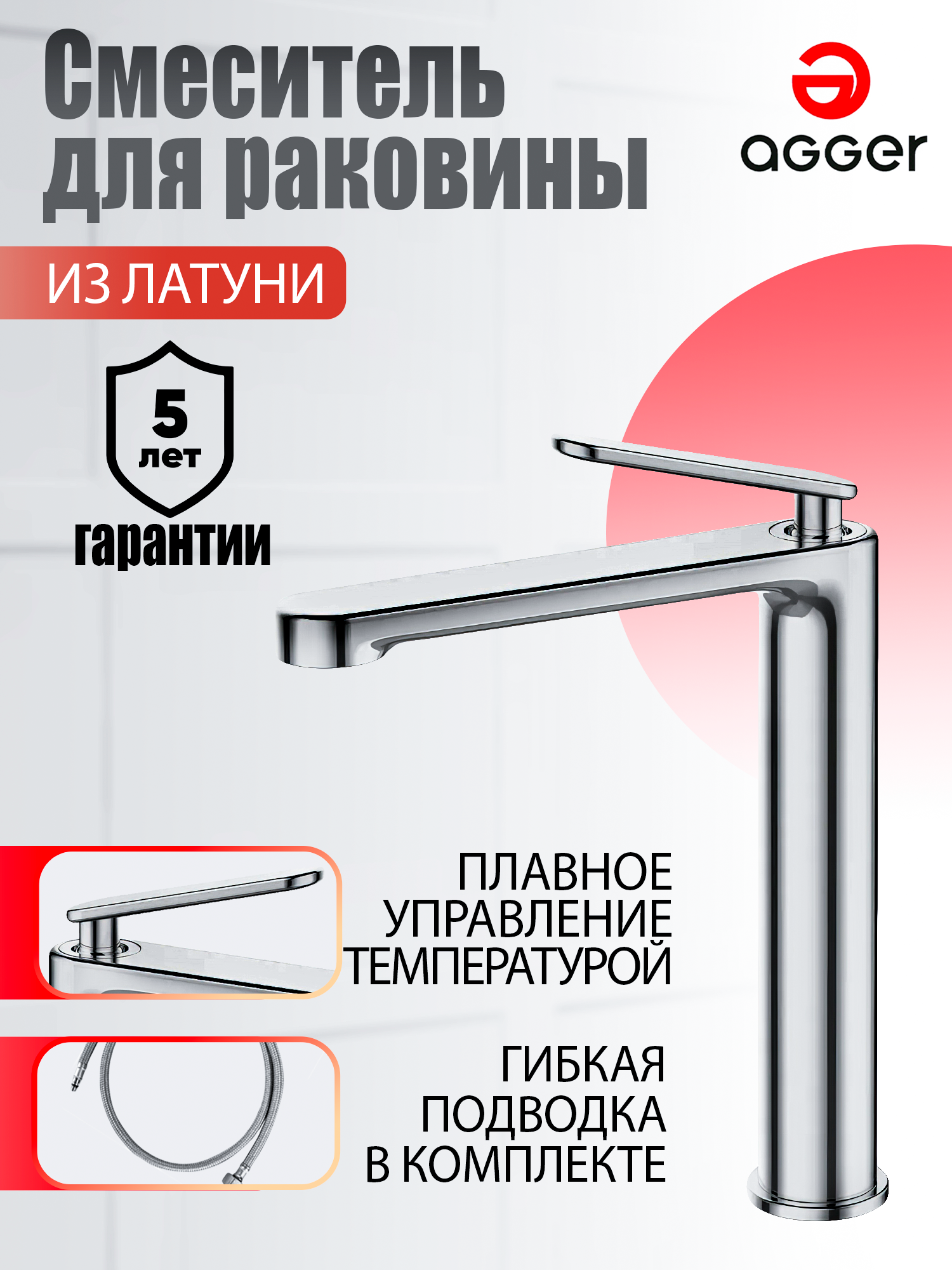 Смеситель для раковины, для накладной раковины, высокий Agger Beauty A2612100, хром