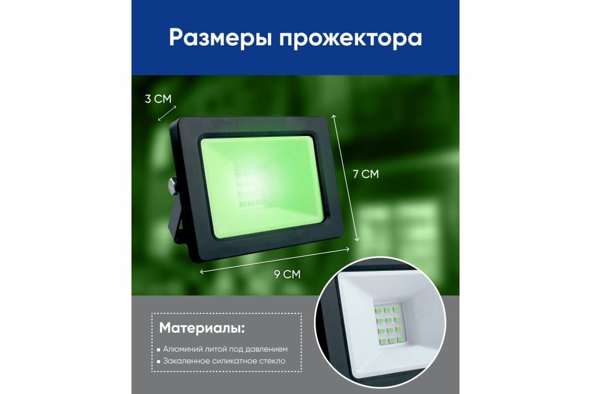 Прожектор светодиодный 2835SMD, 20W зеленый AC220V/50Hz IP65, в черном компактном корпусе, LL-902 арт. 32210